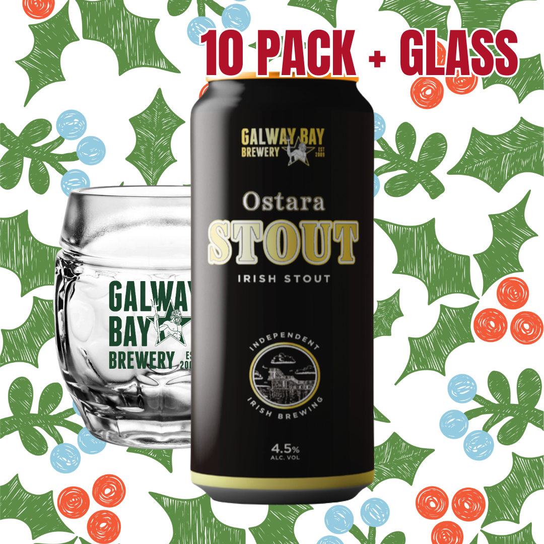 A 10 pack of our brand spanking new Ostara 440ml cans plus a special brand Galway Tankard to knock them back with.